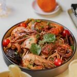Pate aux crevettes sauce rouge